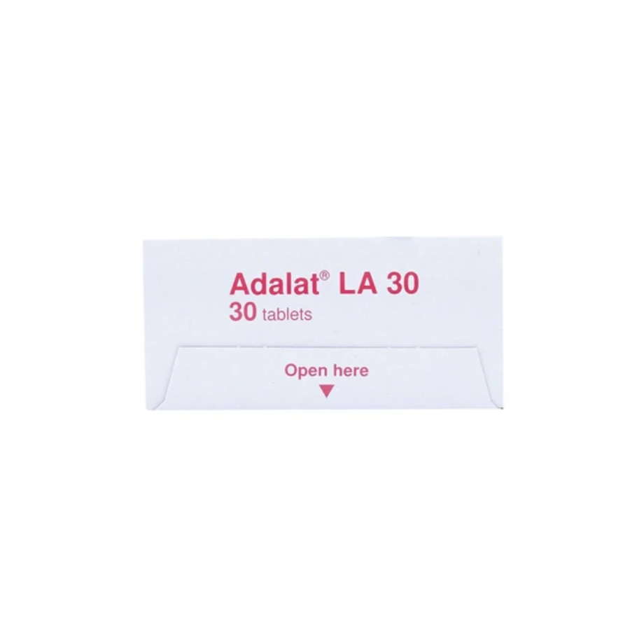 Thuốc Adalat LA 30mg là thuốc tim mạch có thành phần chính Nifedipine 30mg, thuộc nhóm chẹn kênh calci, được bào chế dưới dạng viên phóng thích kéo dài. Thuốc được sử dụng trong điều trị tăng huyết áp ở mọi mức độ và dự phòng cơn đau thắt ngực ổn định mạn tính, giúp kiểm soát huyết áp và cải thiện lưu lượng máu đến tim.